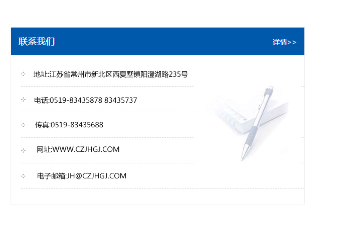 地址:常州市新北區(qū)友邦商務大廈1幢16、17層  電話:0519-85101652  傳真:0519-85112595  郵編:213022  網(wǎng)址:www.cz-jiayue_cn.bj955.com  郵箱:xiajifengaa@163.com